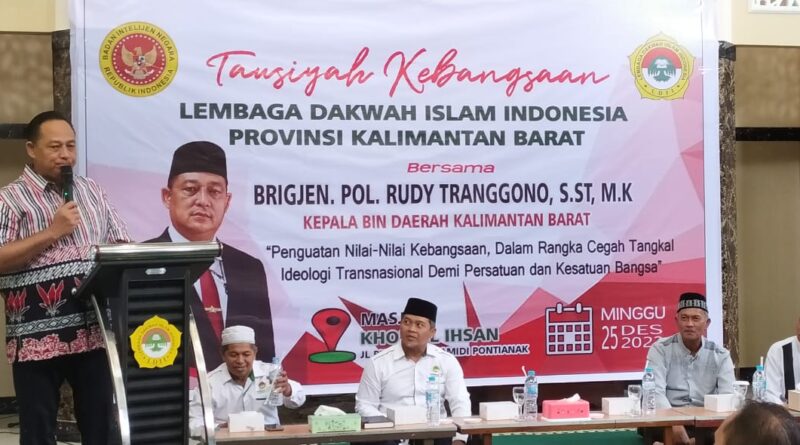 LINESTV.ID, Pontianak. – Kepala Badan Intelijen Negara (BIN) Daerah Kalbar, Brigjen Pol Rudy Tranggono memuji komitmen kebangsaan LDII yang terus berperan serta menjaga persatuan dan kesatuan bangsa. Program dan aktifitasnya tetap memegang nilai-nilai kebangsaan, karena sikap seperti itulah yang dibutuhkan negara saat ini.